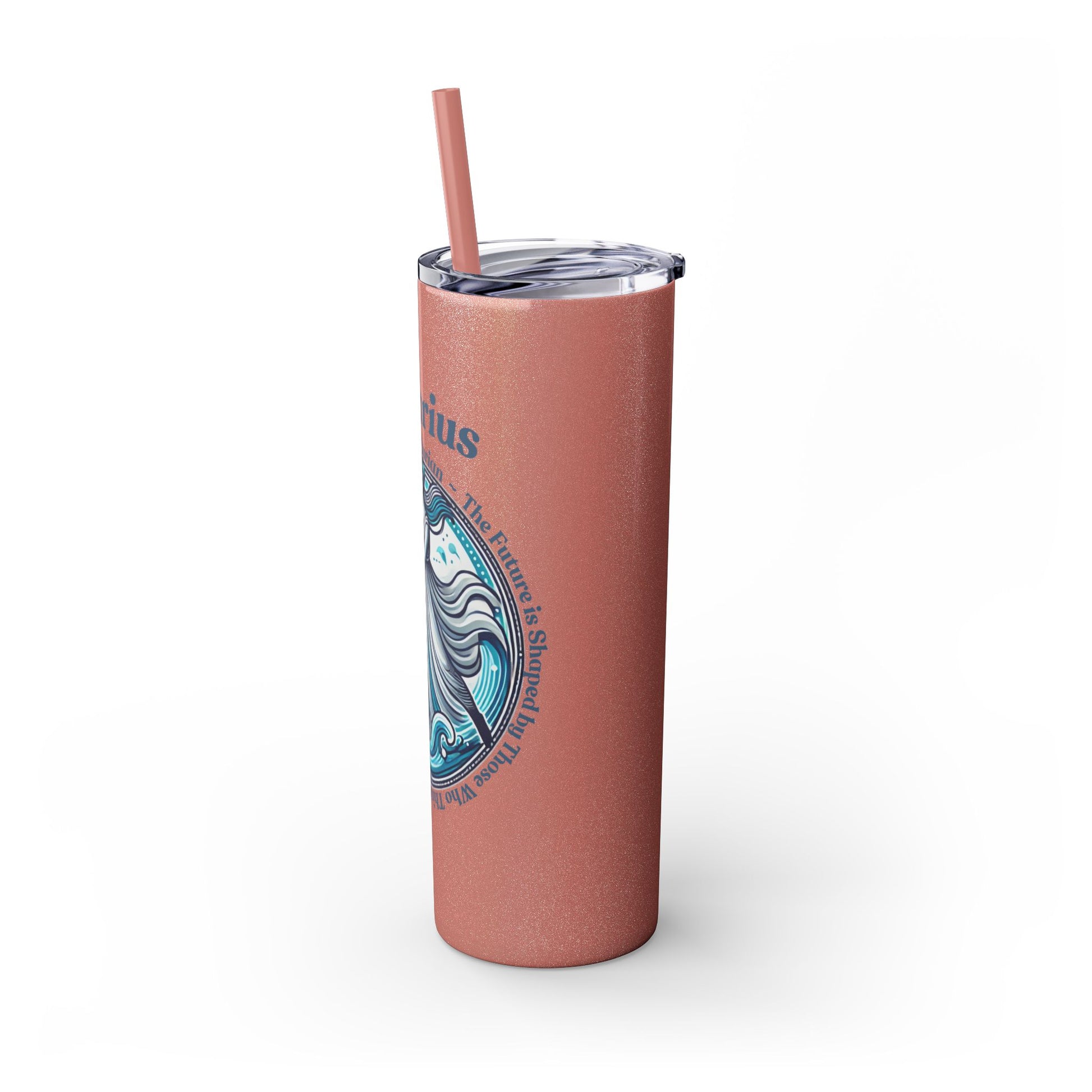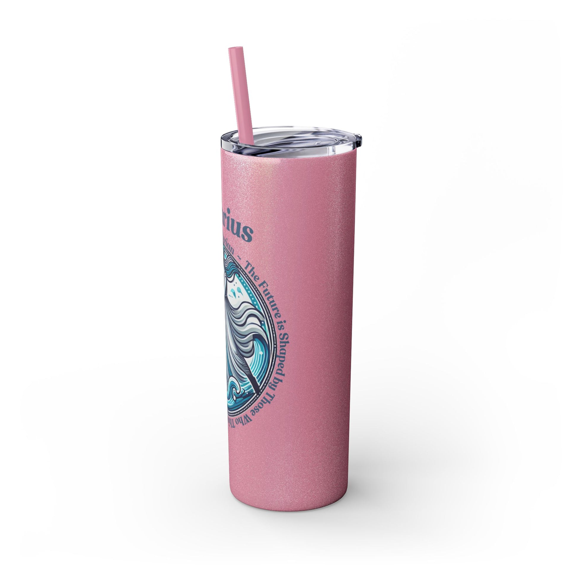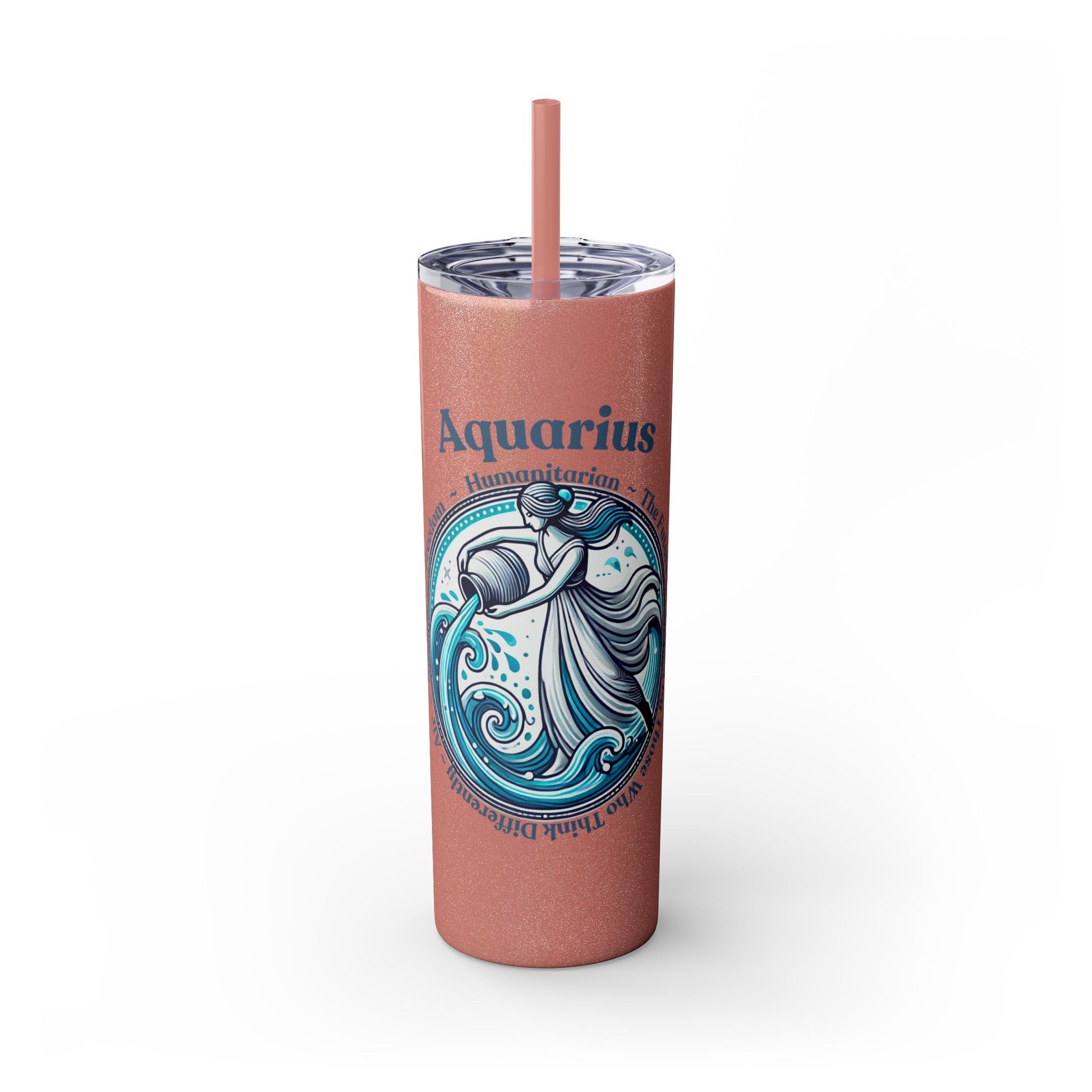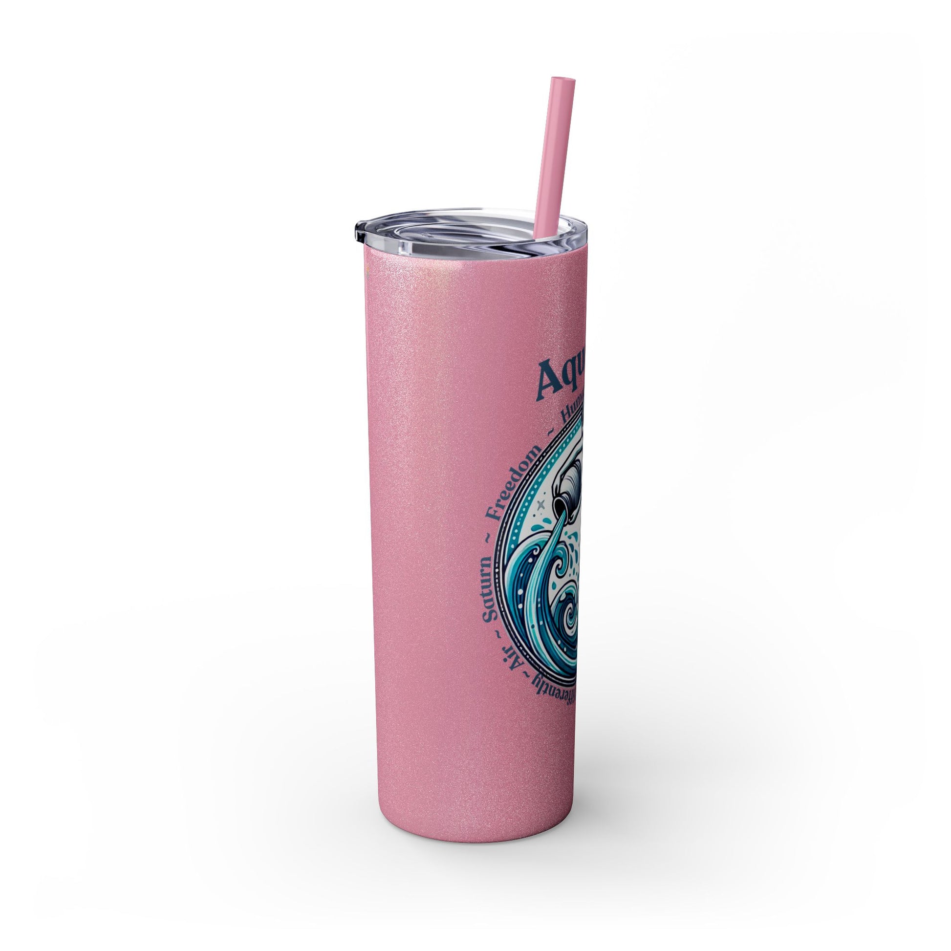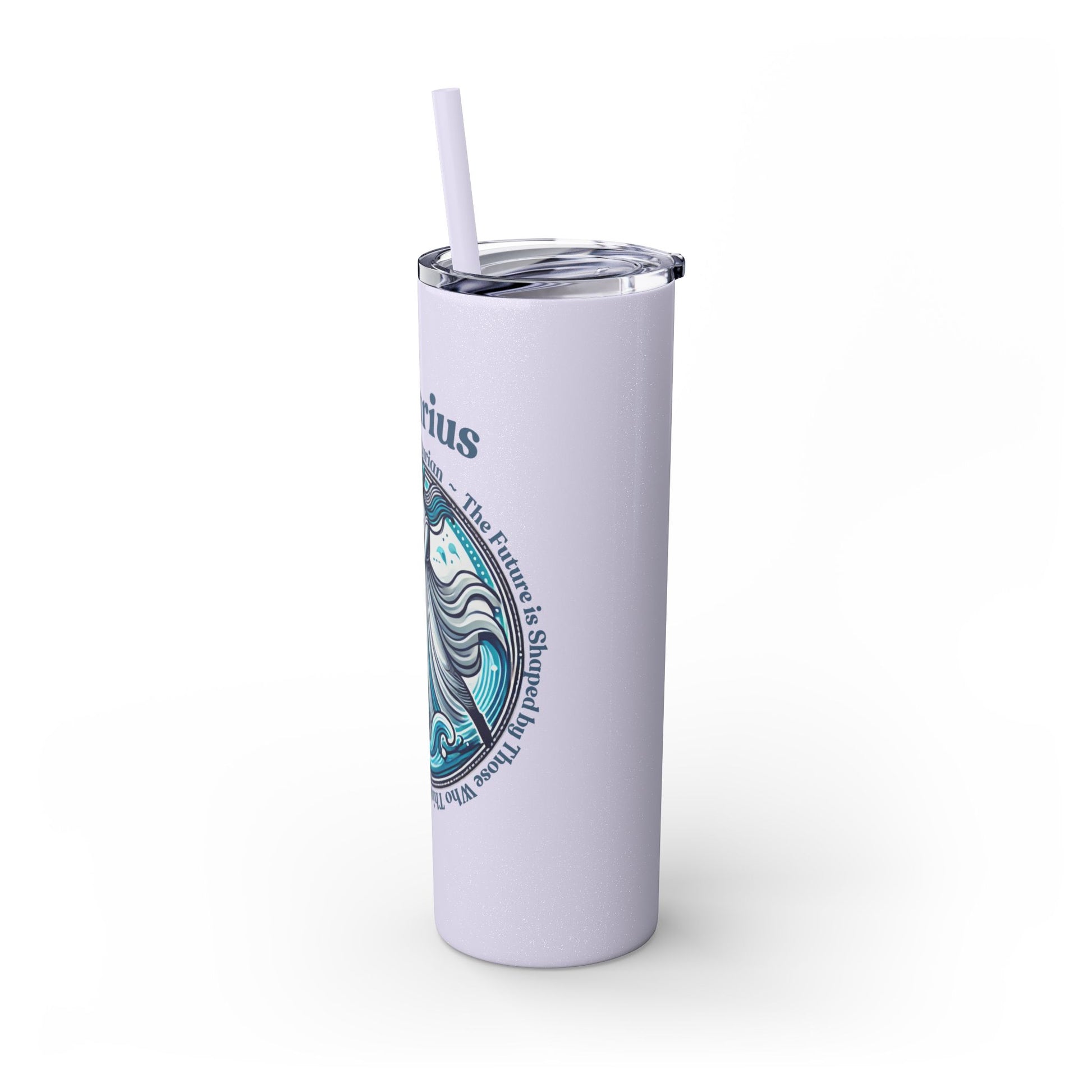 Aquarius Zodiac Tumbler with Straw - 20 oz - Astrology Drinkware for progressive humanitarians. This tumbler offers double-wall insulation to keep drinks hot for up to 12 hours and cold for up to 24 hours. Perfect for those who enjoy astrology and vibrant designs.