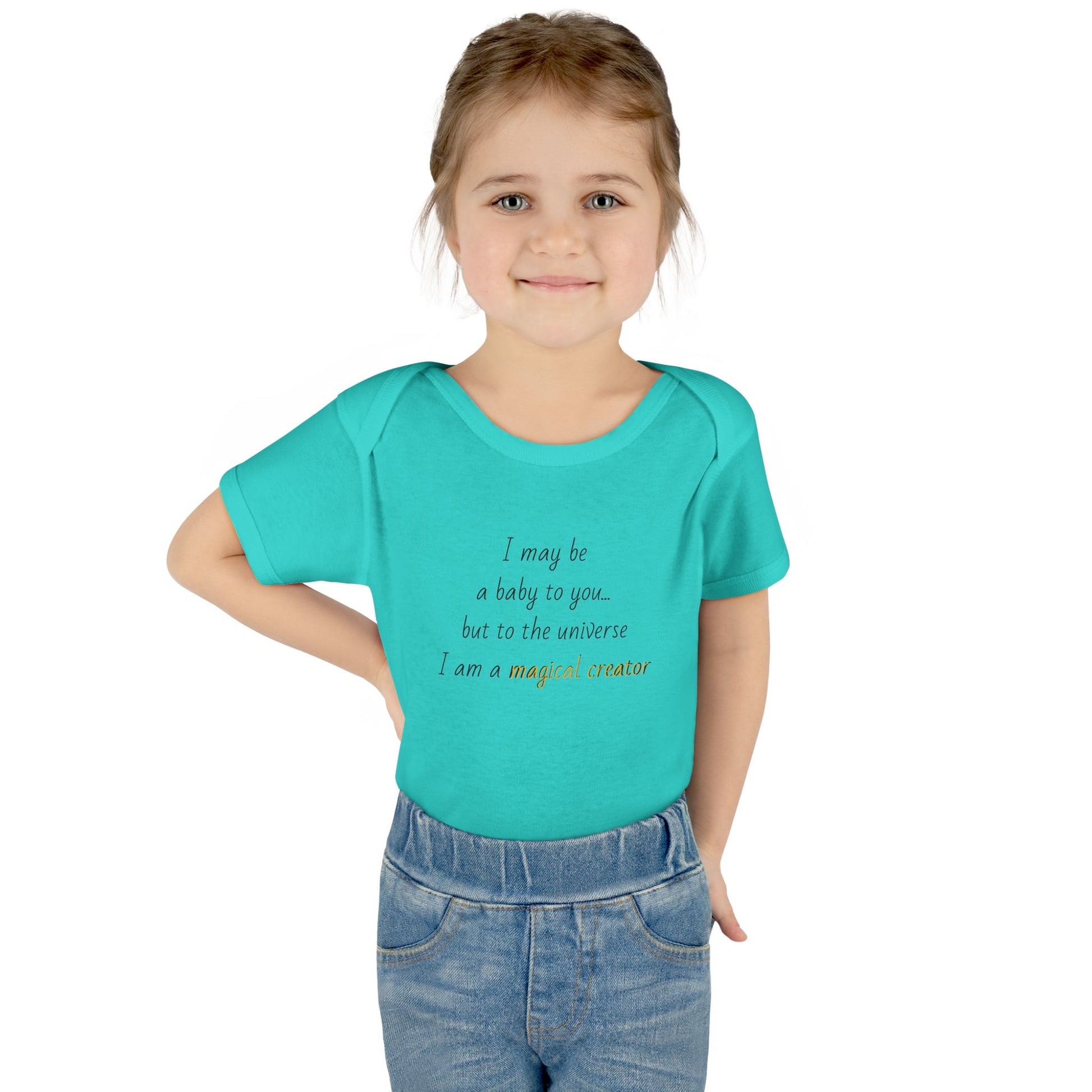 Celebrate the boundless creativity and potential of your newest family member with our magical creator infant bodysuit. It's not just an article of clothing; it's a statement of the extraordinary possibilities that lie within your little one, ready to be nurtured and unleashed upon the world.