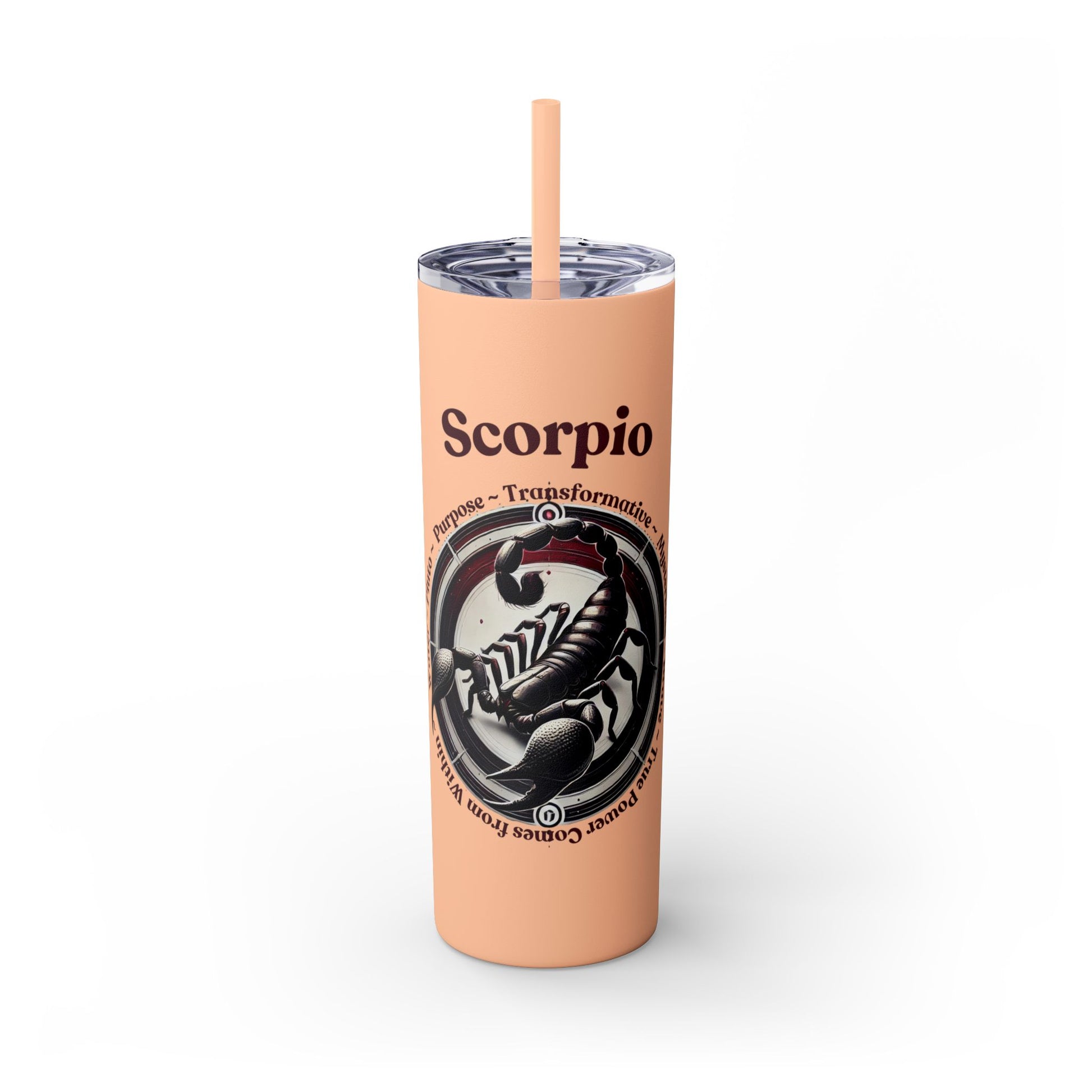 Scorpio Zodiac Tumbler with Straw - 20 oz - Astrology Drinkware for Resourceful and Brave People. This tumbler offers double-wall insulation to keep drinks hot for up to 12 hours and cold for up to 24 hours. Perfect for those who enjoy astrology and vibrant designs.