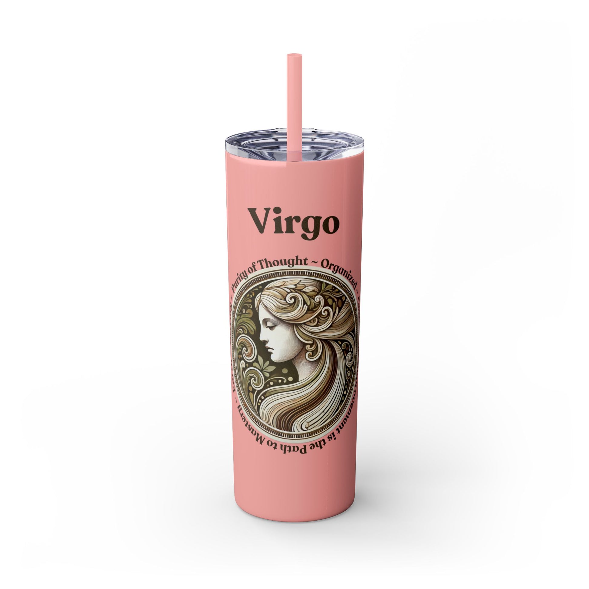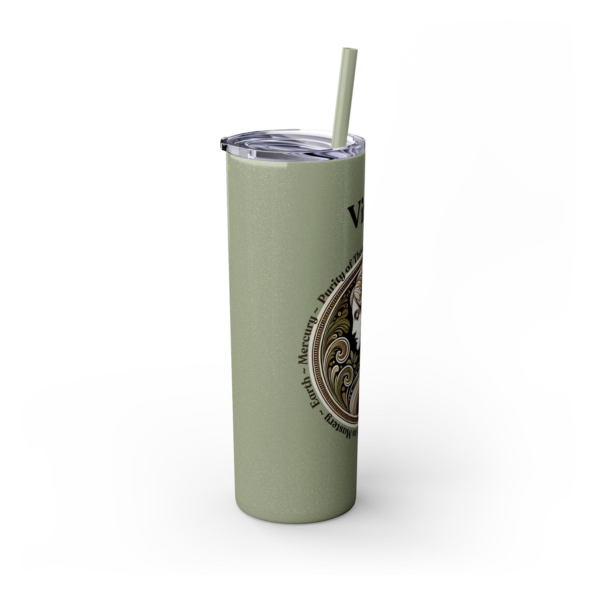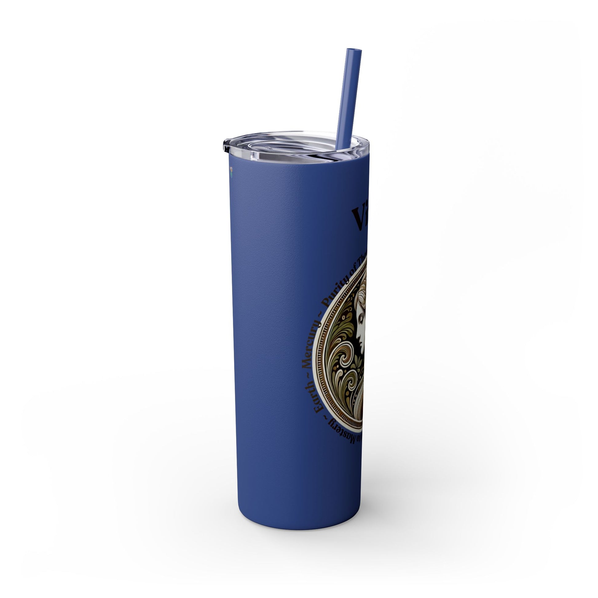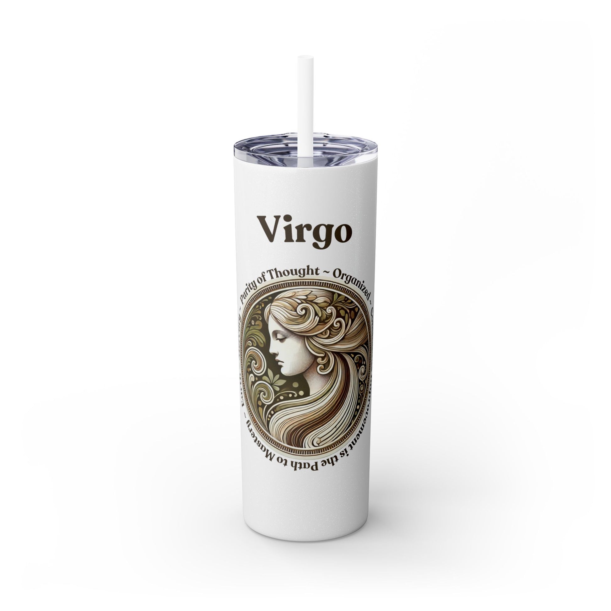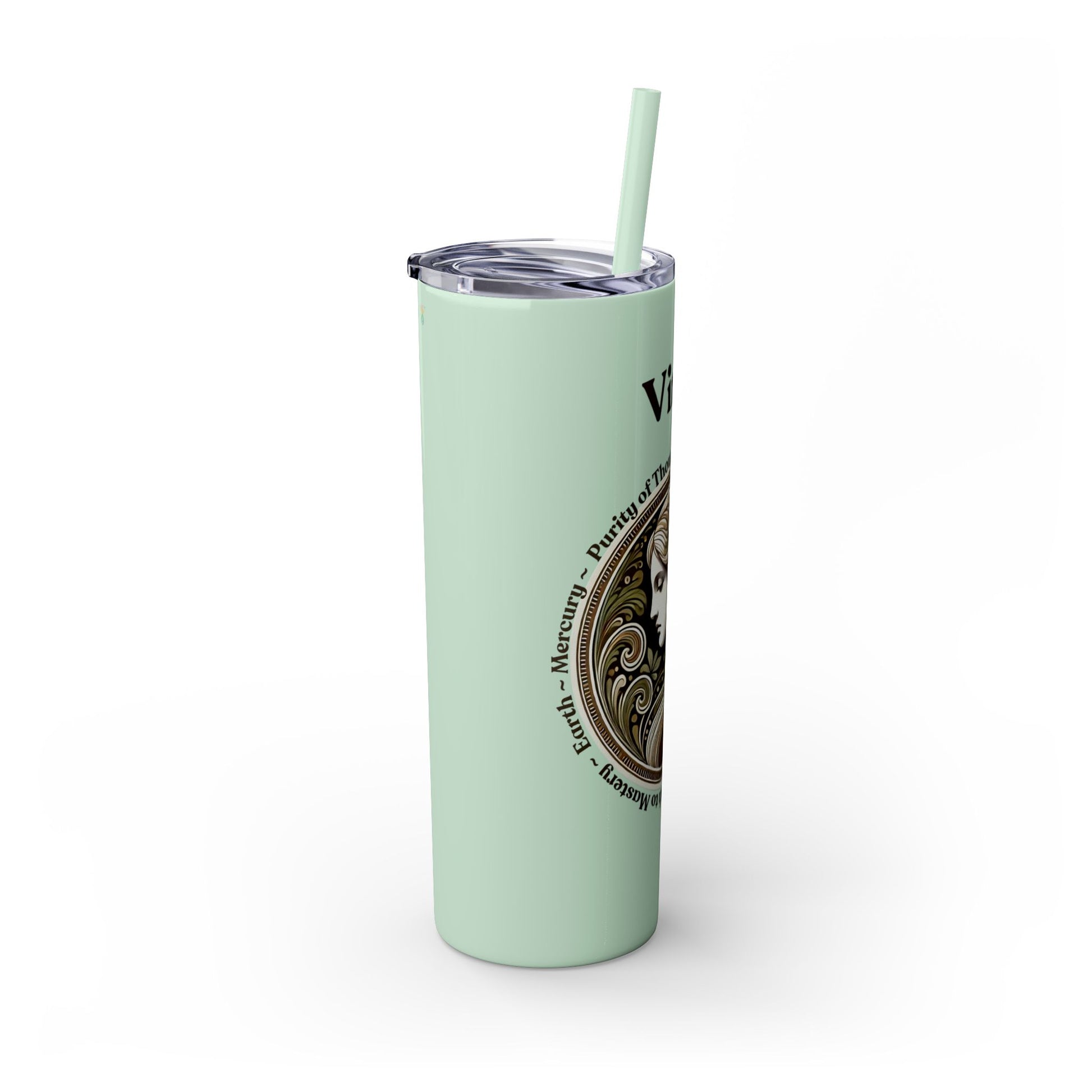 Virgo Zodiac Tumbler with Straw - 20 oz - Astrology Drinkware for Modest and Detail-Oriented People. This tumbler offers double-wall insulation to keep drinks hot for up to 12 hours and cold for up to 24 hours. Perfect for those who enjoy astrology and vibrant designs.